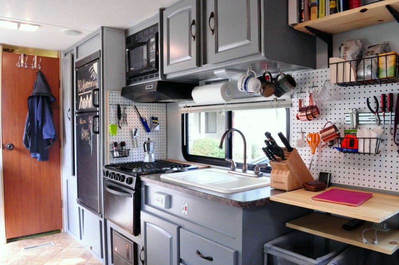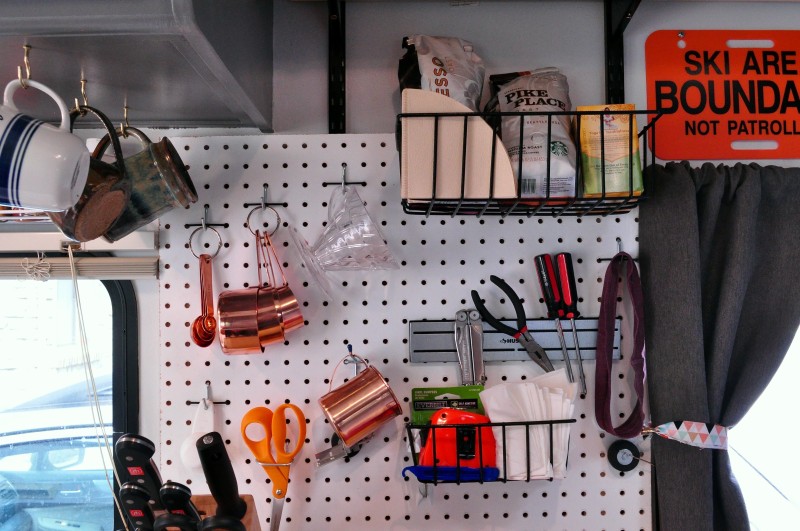 One of the couple’s favorite features: Pegboard to hang all of their kitchen accessories.