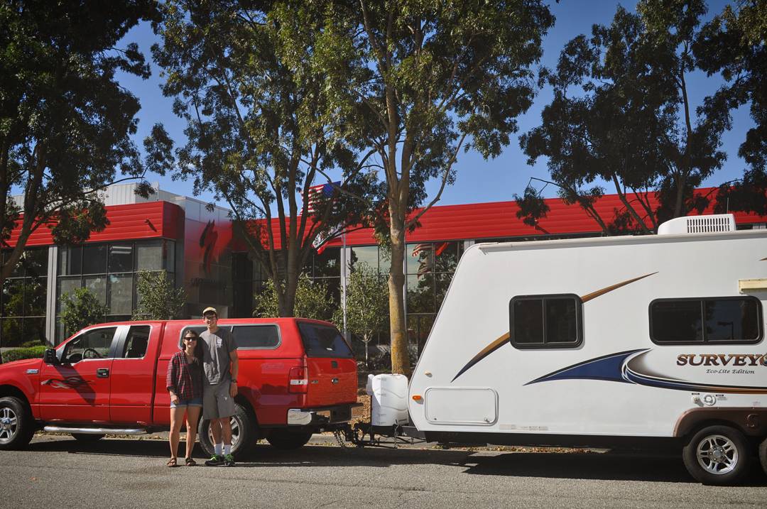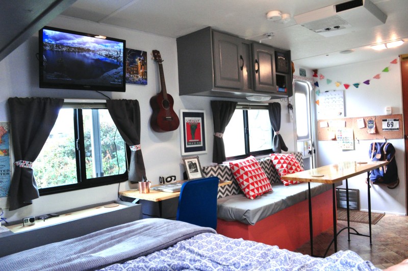 “We decided that we would go for a newer, better kept model, so that we could focus on what we really cared about- converting it into a comfortable living space. On Craigslist, we found a trailer that stood out; a 2010 23 foot trailer. We took a look at it, and realized the potential it had. Later that day, the owner towed it to our apartment!”