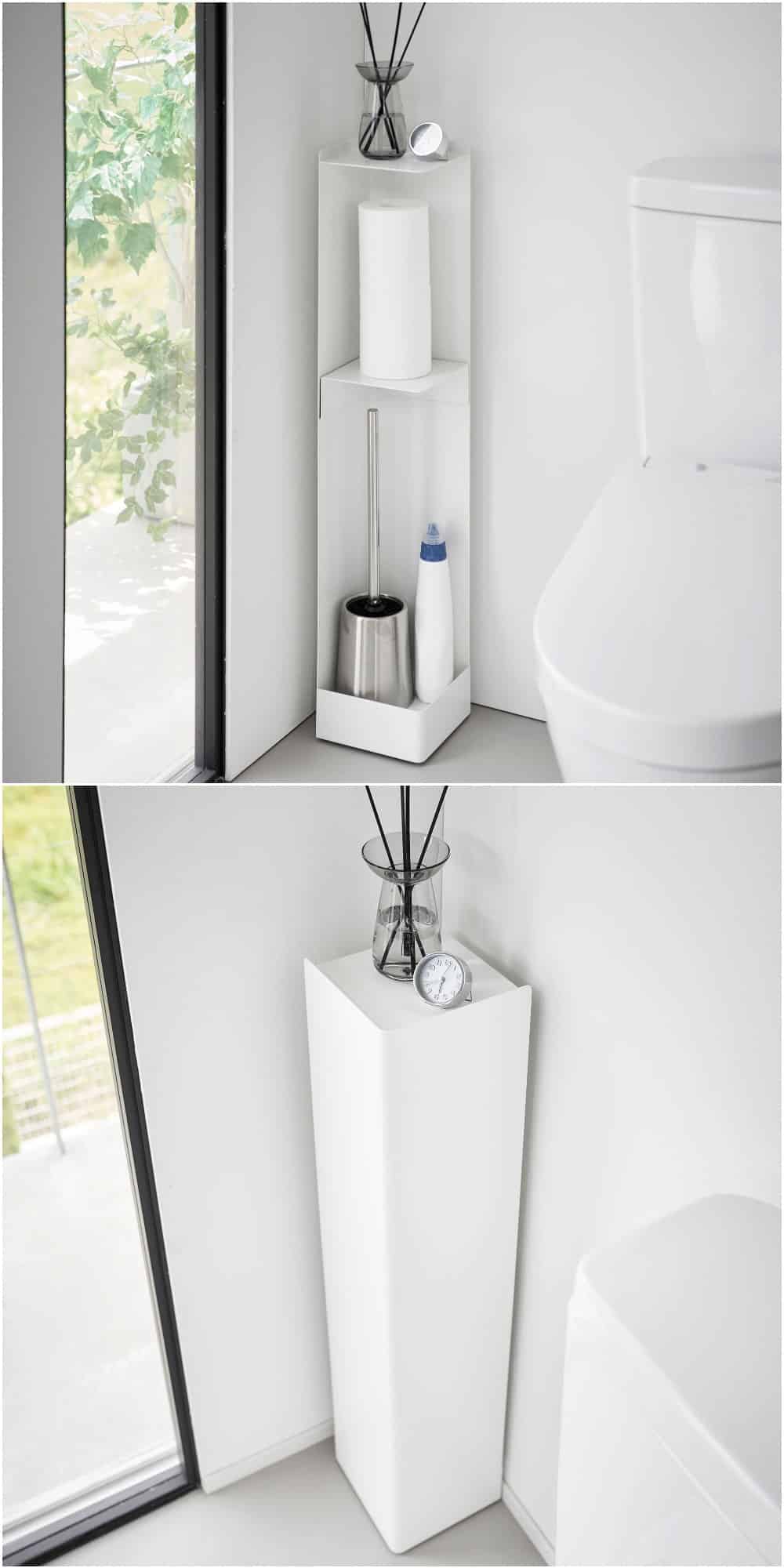 Designed in Japan (aka the masters of compact living), this slim steel cart is the definition of “small but mighty.” It glides neatly into narrow bathroom gaps, instantly turning awkward slivers of space into smart storage. There’s room to discreetly stash less-than-pretty essentials like your toilet brush and toilet cleaner, keeping everything tucked away but still within reach. The adjustable magnetic shelf lets you tailor the setup to your needs, while the top shelf is just right for a candle, a small plant, or your everyday go-tos. Clean-lined, unfussy, and quietly brilliant.