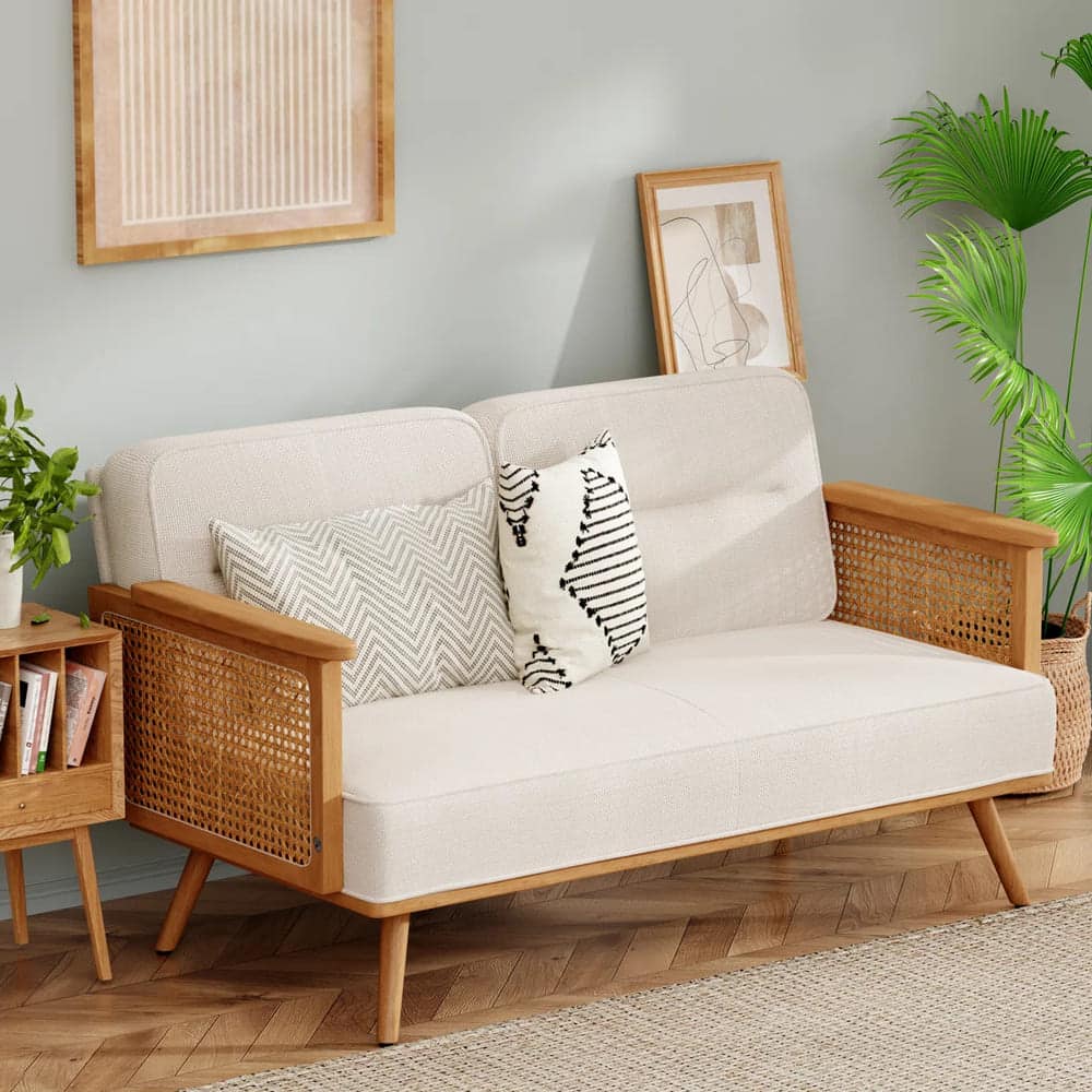 For a small-space piece that blends natural texture with modern simplicity, this rattan-accented loveseat is a hidden gem. With solid wood legs and ergonomic design, it’s both supportive and stylish. The woven arms introduce a breezy, organic note that feels equally at home in a city studio or a coastal retreat—proof that great design doesn’t have to come with a hefty price tag.