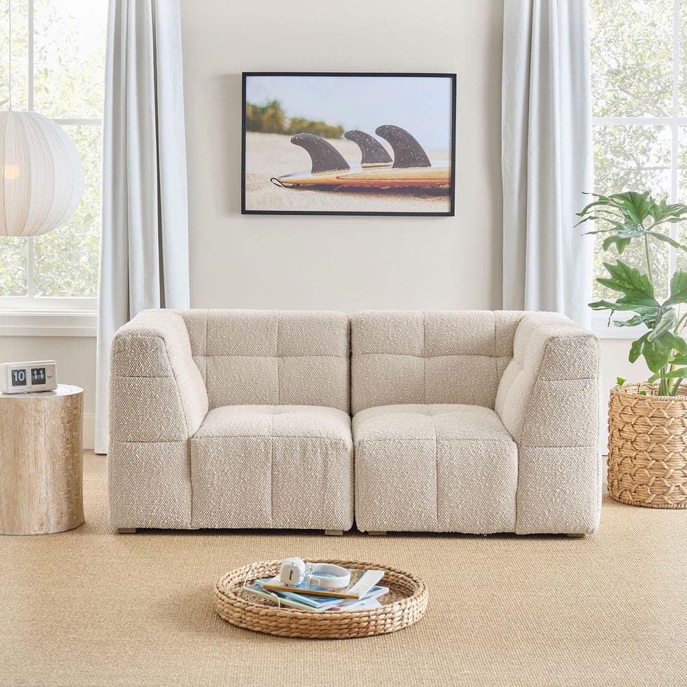 Designed for flexibility, the Baldwin Loveseat Set adapts to the way you live. Two modular corner chairs come together to form a plush, tufted loveseat—perfect for lounging, entertaining, or simply stretching out with a book. Sturdy construction and a soft, modern profile make it both practical and beautiful. It’s the kind of small-space solution that proves versatility can still feel luxurious.