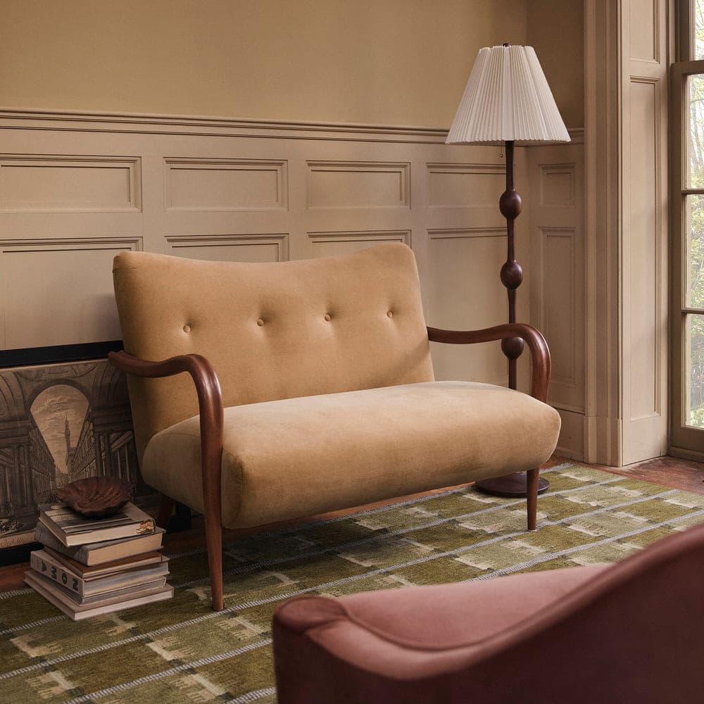 Designed in collaboration with the beloved design duo Pierce & Ward, this petite loveseat captures vintage charm with a modern twist. The sculpted bentwood frame and walnut finish bring warmth and craftsmanship, while the soft upholstery invites you to linger. Equal parts statement piece and everyday essential, it’s ideal for small living spaces that crave a touch of old-school glamour.