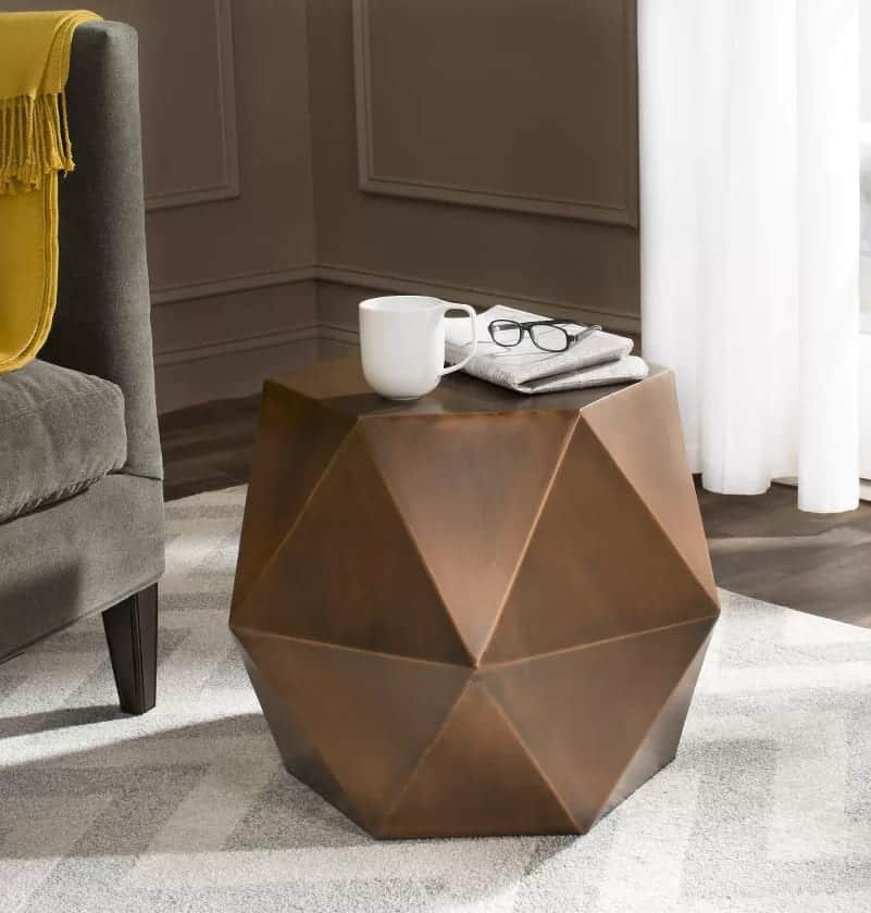 Sculptural and sophisticated, the Astrid table is crafted from iron with a lustrous copper finish that catches the light beautifully. Its faceted design feels modern yet timeless, making it as much a piece of art as it is an accent table. Compact and versatile, it complements both contemporary lofts and classic living rooms with ease—no assembly required.