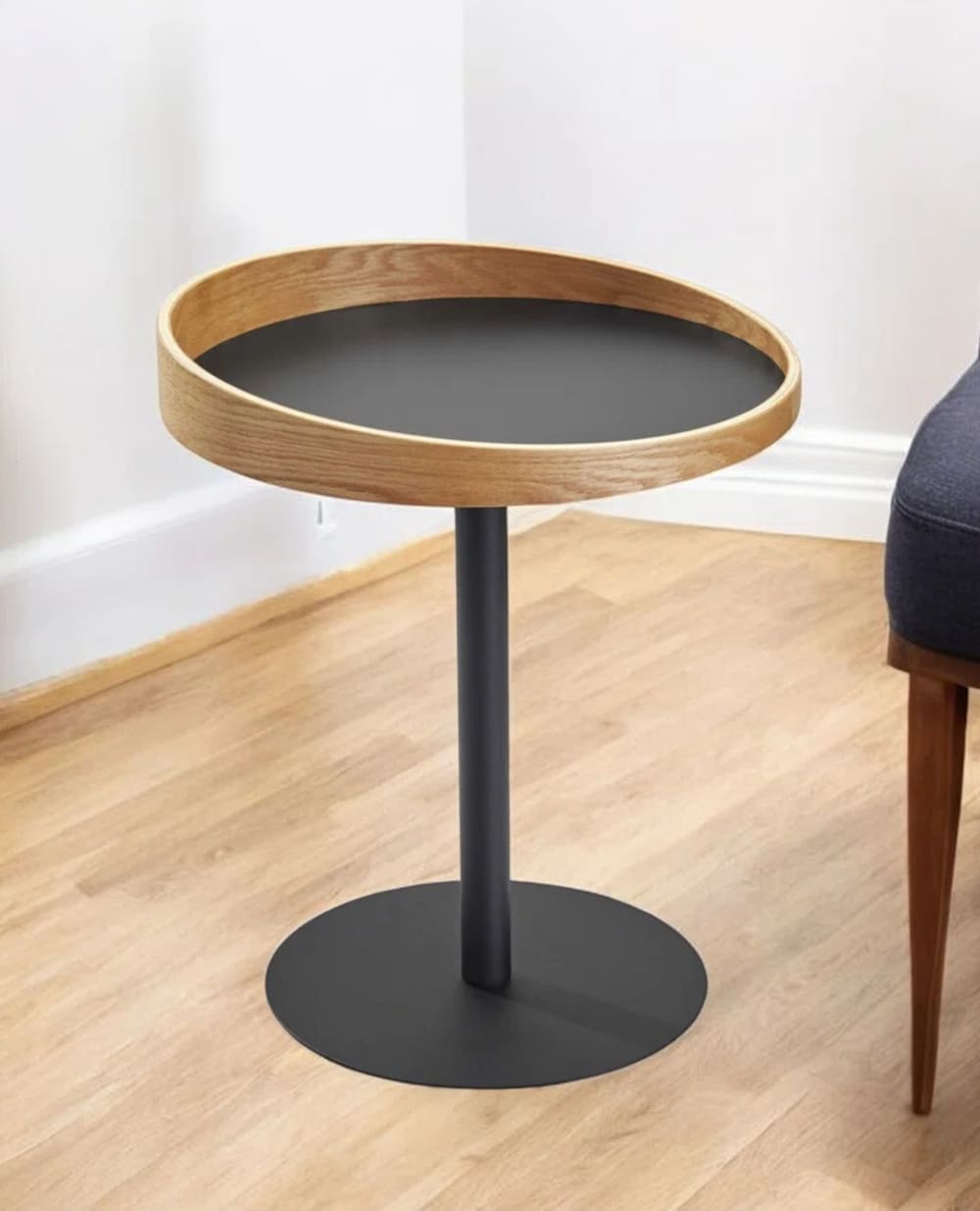 A sleek mix of natural wood and matte black metal, the Hileman pedestal table strikes a perfect balance between form and function. Its tray-style top keeps items safely in place, while the sculptural pedestal base adds a modern edge. Ideal for use as a bedside table, sofa companion, or stylish accent in a reading nook, it’s a versatile piece with mid-century flair.