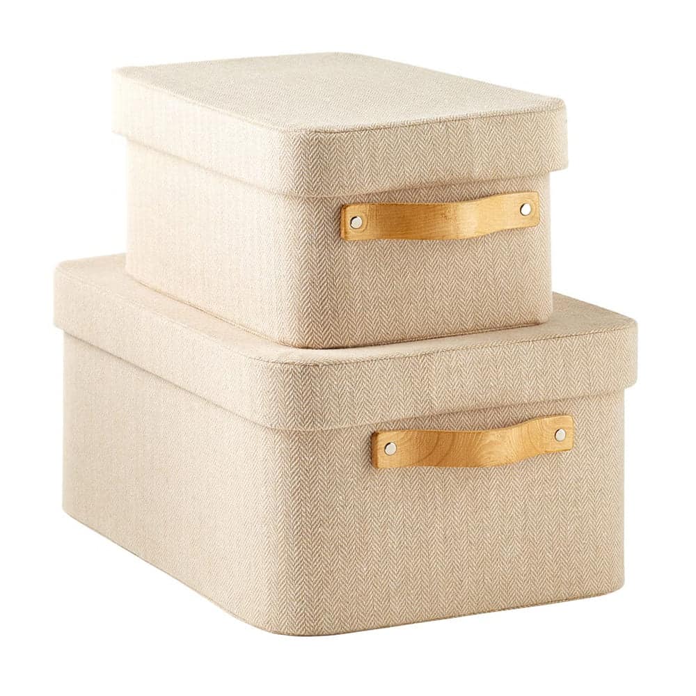 With their tailored fabric exterior and wood handles, these boxes feel far more elevated than your average storage bin. The classic herringbone pattern adds just enough detail, making them a great choice for closets, shelves, or anywhere you want storage to feel intentional.