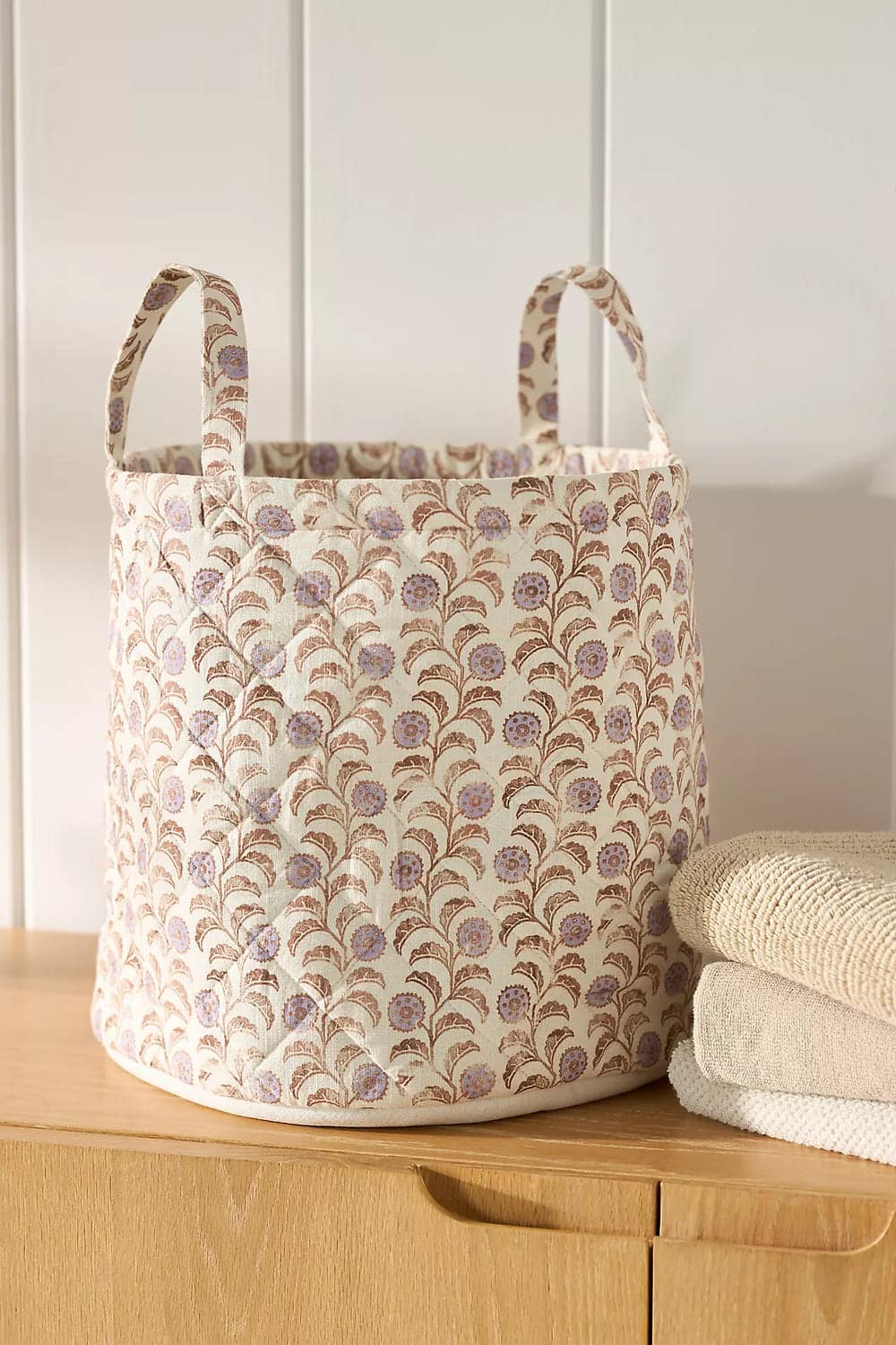 Not all storage needs to be structured—this quilted cotton basket brings a softer, more relaxed approach. The cross-quilted detailing and subtle print give it a cozy, lived-in feel that works beautifully in bedrooms, nurseries, or reading corners. It’s perfect for stashing everything from throw blankets to odds and ends, all while adding a gentle layer of texture to your space.