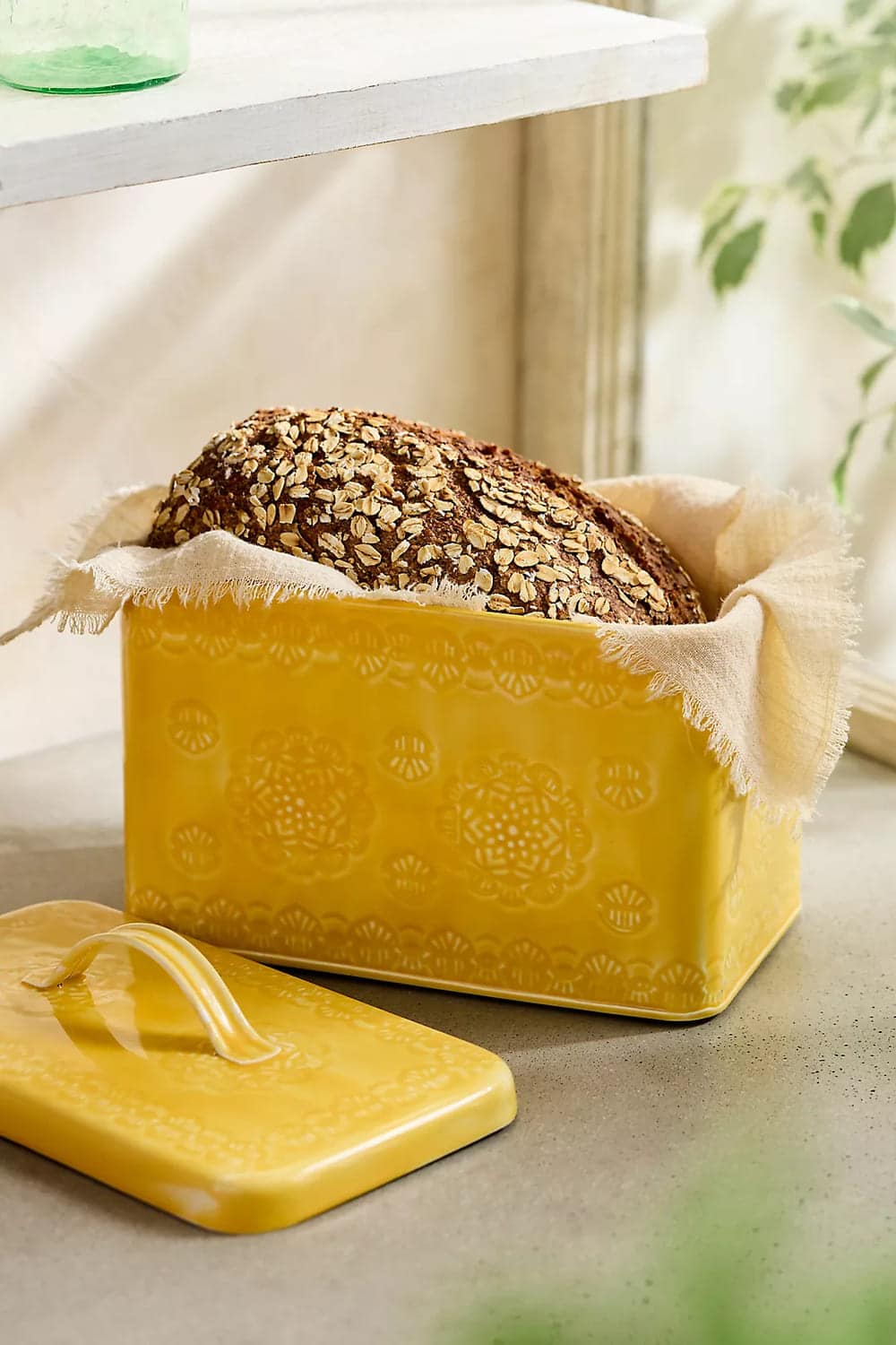 This cheerful enamel bread box brings vintage charm to your countertop. It’s practical, colorful, and the kind of piece that makes everyday routines feel a little more special.