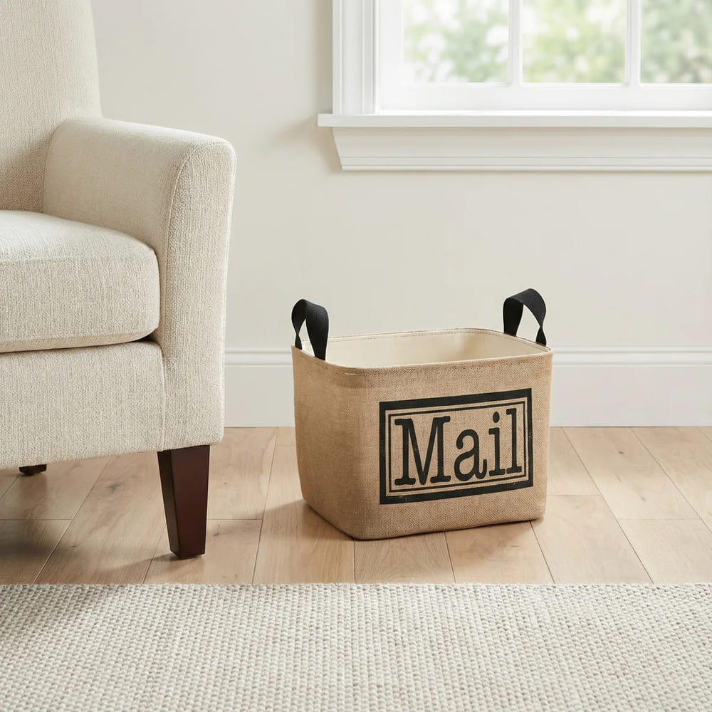 Mail piles up fast—but this rustic burlap bin makes it look intentional. With its soft, lived-in texture and simple “Mail” label, it adds just the right amount of charm to a console or kitchen counter. The canvas lining keeps things structured, while the handles make it easy to grab everything on your way out the door.