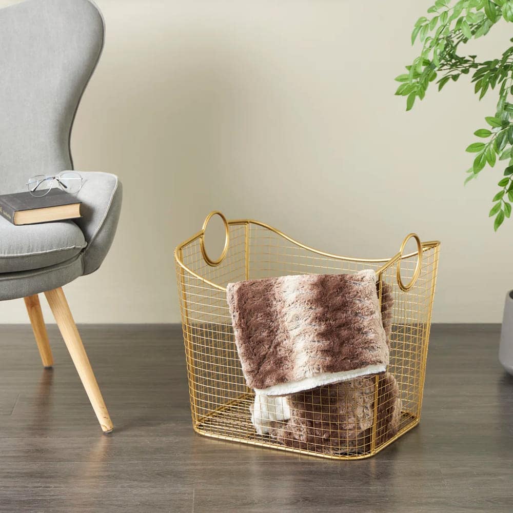 For a more modern, pared-back look, this black metal wire basket delivers. The open design keeps things visually light (great for small spaces), while still offering plenty of room for blankets, books, or everyday essentials. It’s one of those versatile pieces that works just as well styled next to a sofa as it does tucked into a corner.