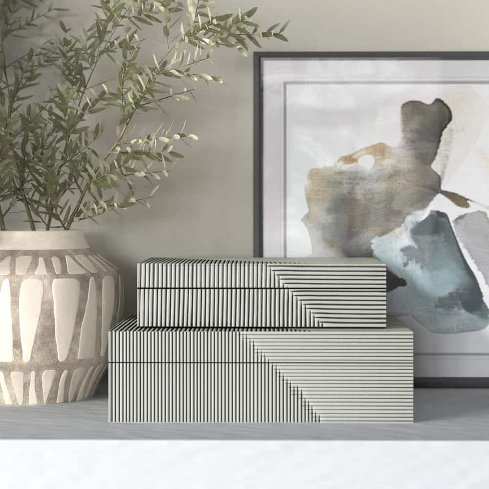If your space leans more contemporary, this set of ridged boxes fits right in. The clean white finish and geometric texture add visual interest without overwhelming your decor. They’re perfect for organizing smaller items while keeping your surfaces looking crisp and uncluttered.