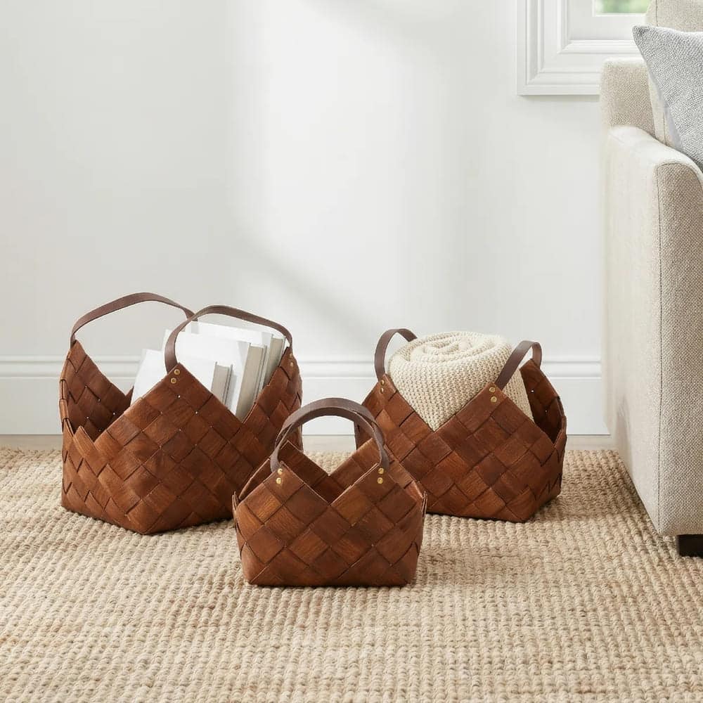 If your space is missing warmth, these woven baskets are an easy fix. The rich brown tone and leather handles give them a relaxed, coastal feel, while the three different sizes make them incredibly versatile. Use them for blankets, toys, or entryway catch-alls—they’ll instantly make your space feel more layered and lived-in.