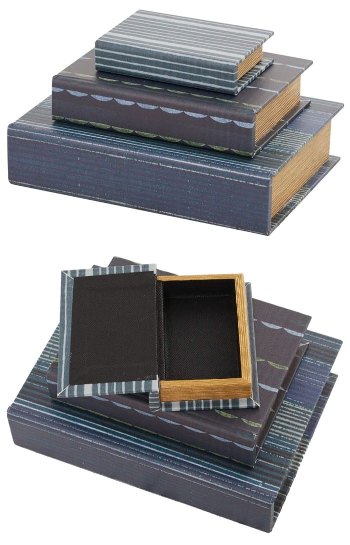 At first glance, they look like a stack of books—but inside, they’re cleverly concealed storage. Perfect for stashing remotes, paperwork, or small valuables, they add height and visual interest to shelves while keeping clutter completely out of sight.