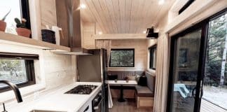 Modern Tiny House Boasts Fold-Down Deck and Dining Area That Converts...