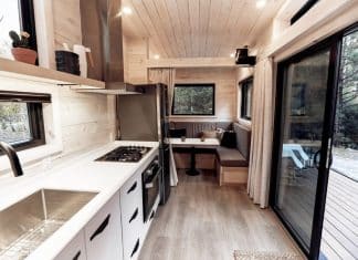 Modern Tiny House Boasts Fold-Down Deck and Dining Area That Converts...