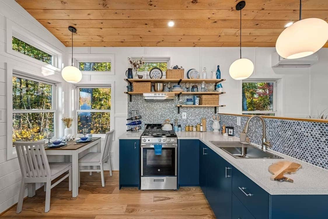 With a vibrant blue color scheme, it’s not hard for this coastal-inspired ‘The Beachcomber’ tiny home to stand out. New Hampshire-based tiny home business Backcountry Tiny Homes proudly designed and built this tiny home for convenient, comfortable part-time and full-time living.