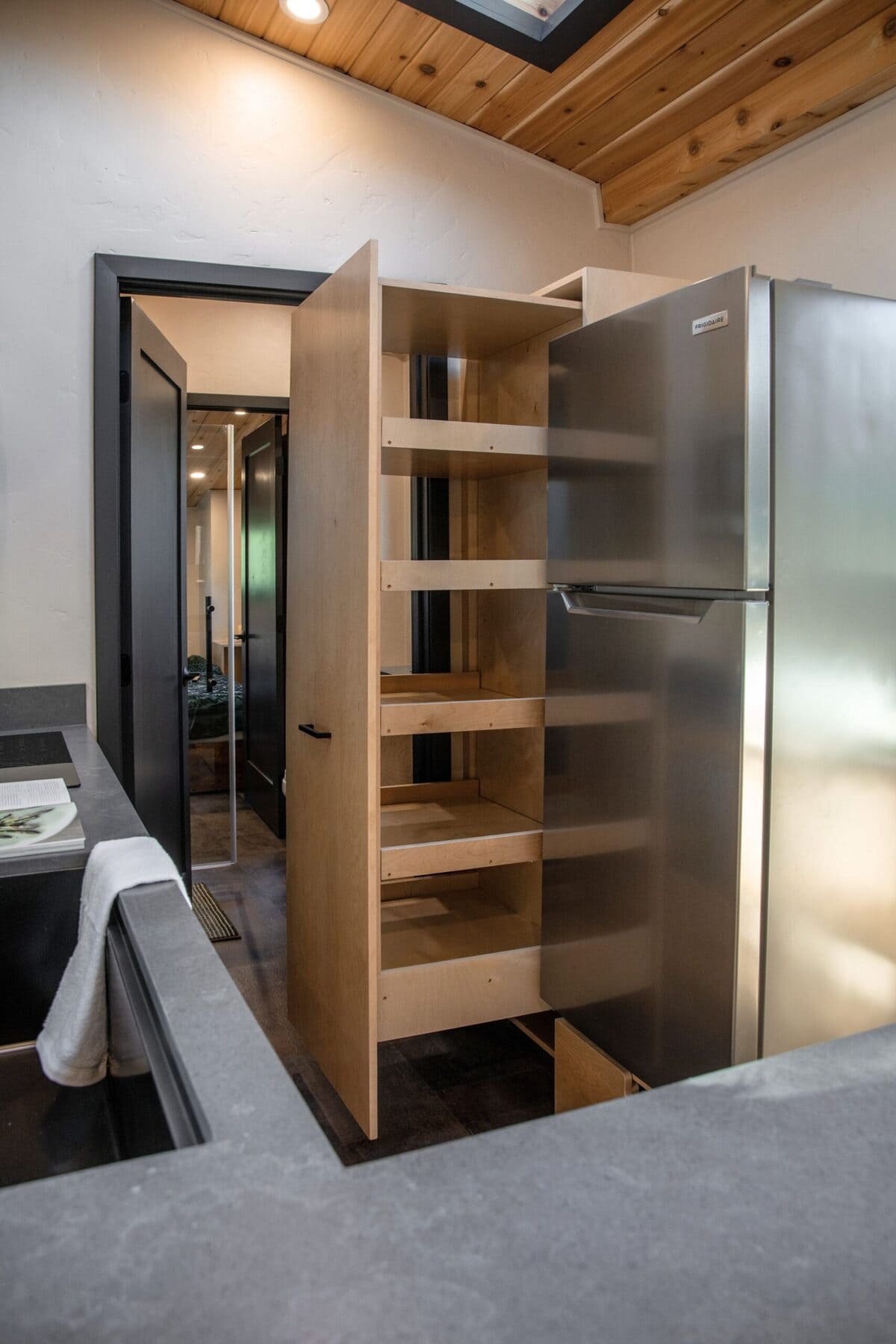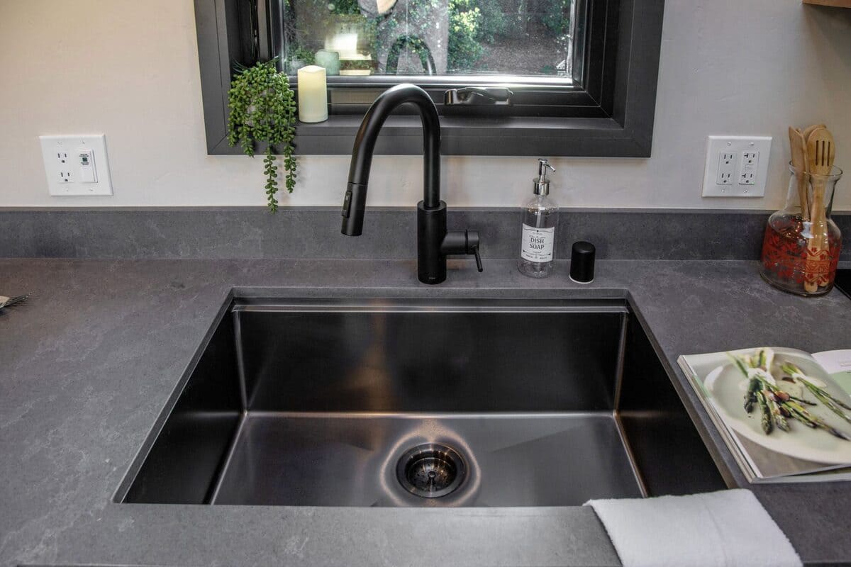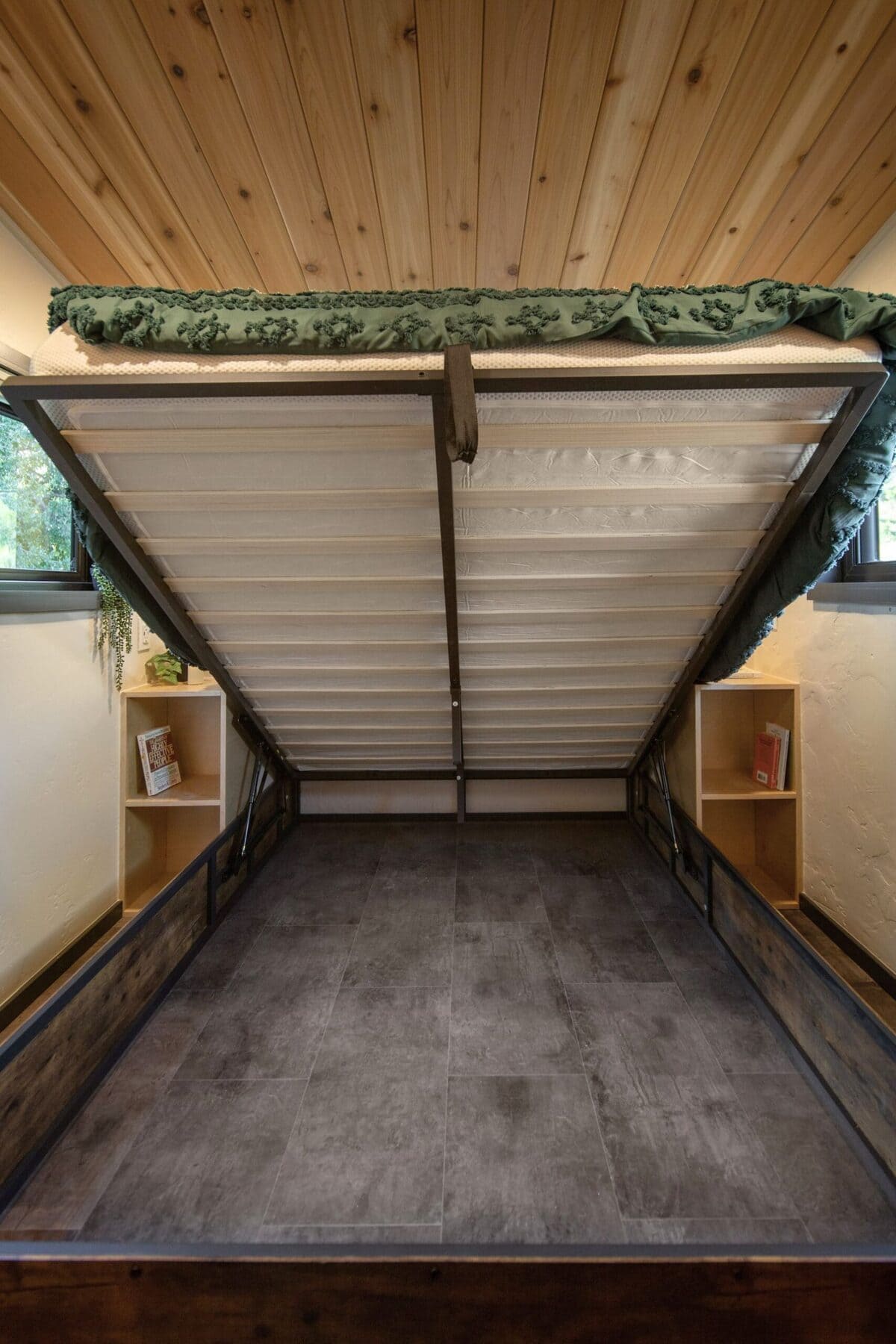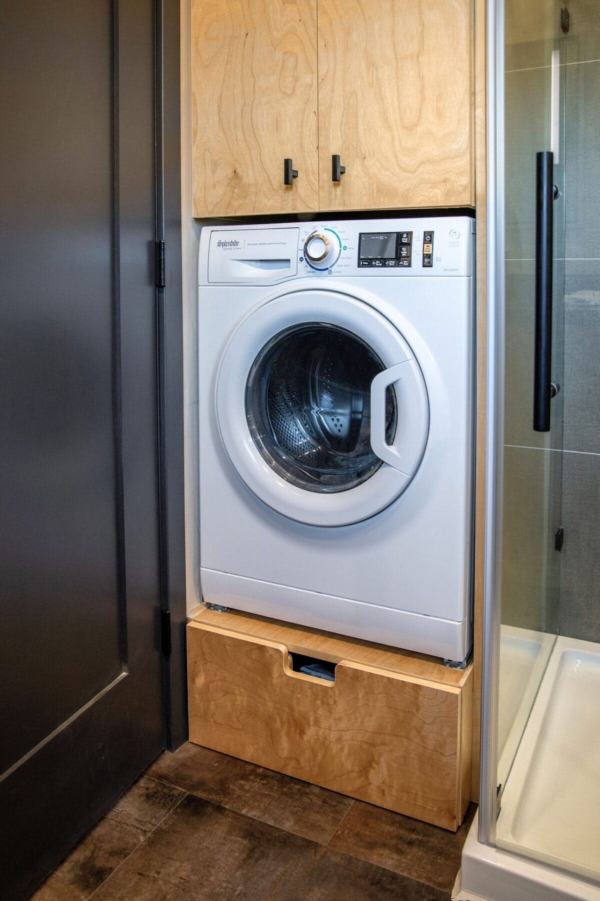 It’s the small details that make the biggest difference, too. Piccola Tiny Homes installed a humidity-sensing automatic exhaust fan to limit moisture buildup. Finally, the cedar ceiling ties this space’s design in with the rest of the home.