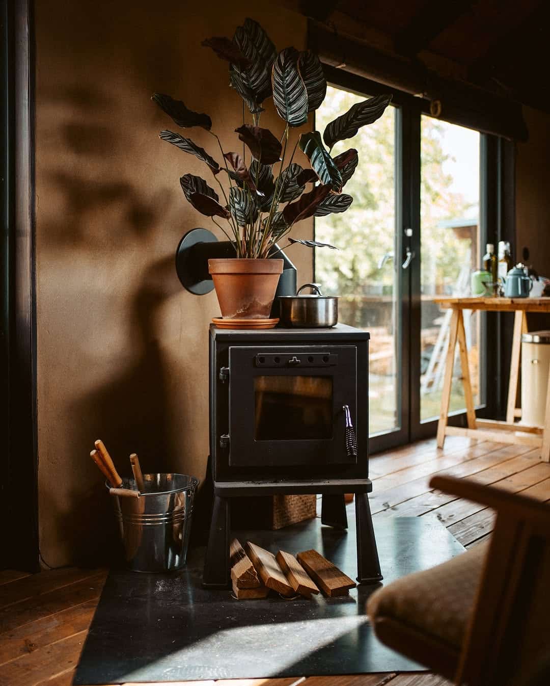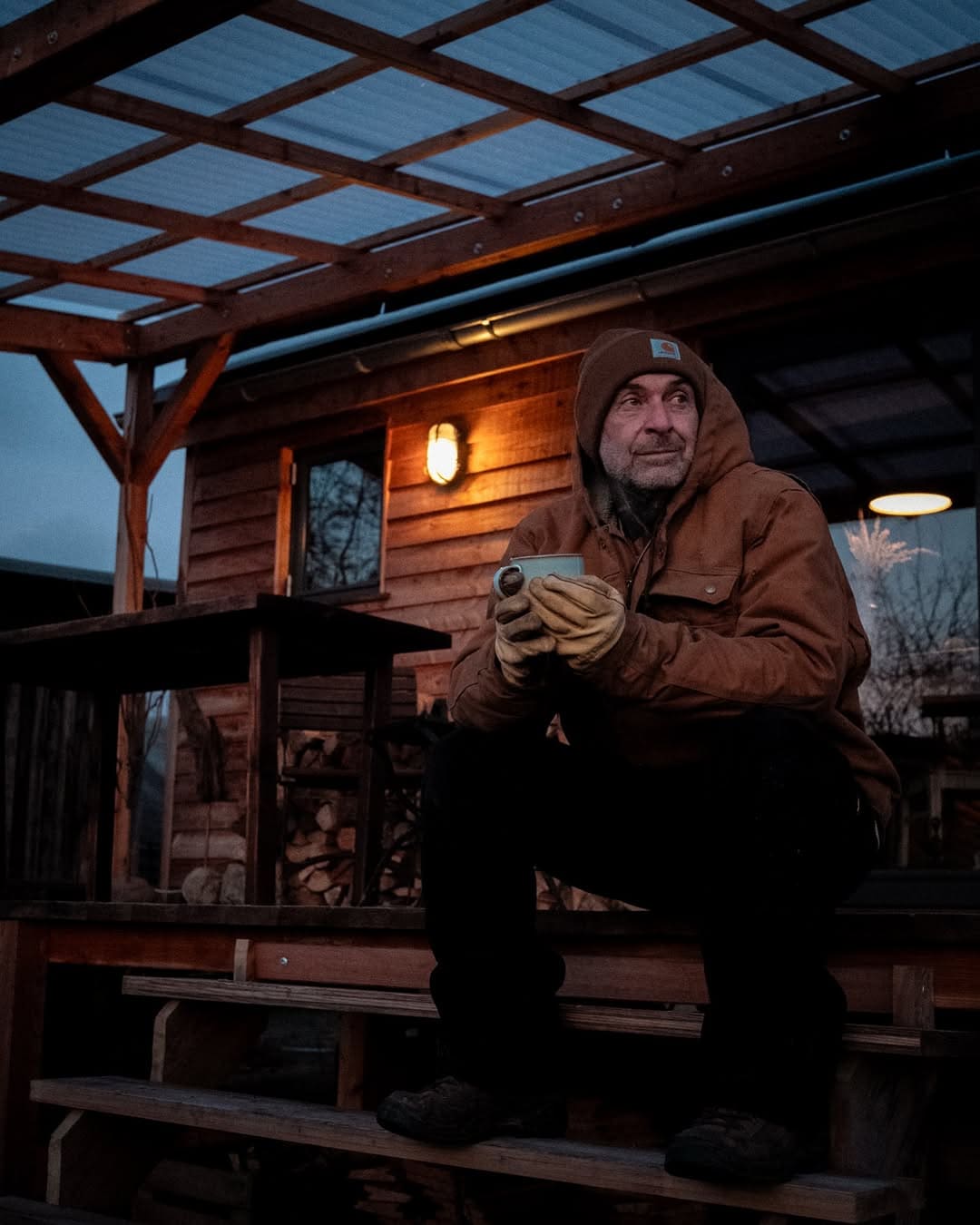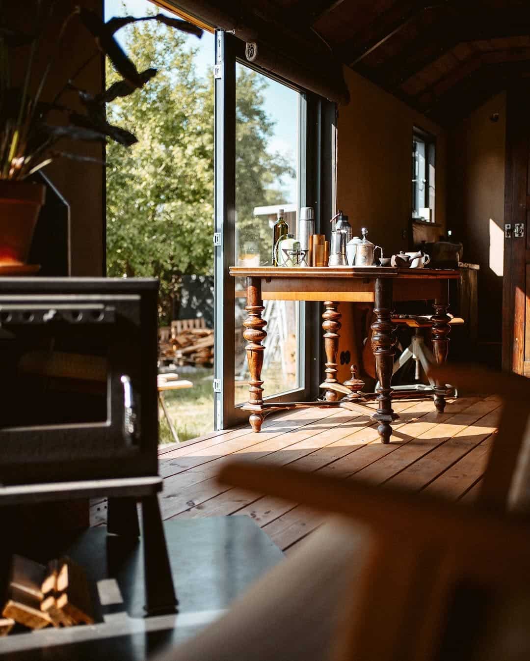 Even when temperatures drop to –10°C, the space remains comfortable. The stove retains heat so well that Kai doesn’t need to re-light it overnight.