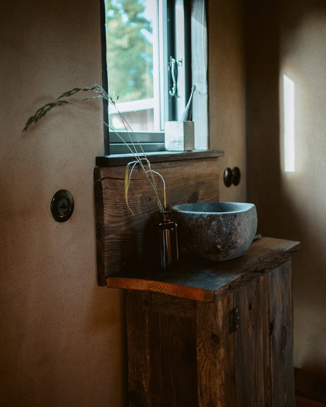 Designed for off-grid living, the system operates entirely without a sewer connection. Liquids and solids are separated and disposed of independently, and because the toilet is permanently installed, Kai added a ventilation system to control moisture and odours. Free from chemicals and wastewater, it aligns closely with the natural material philosophy of the build. In the future, greywater will be treated through a biological filtration system, while the composted output can be safely returned to the landscape—closing the loop in a simple, low-impact way.