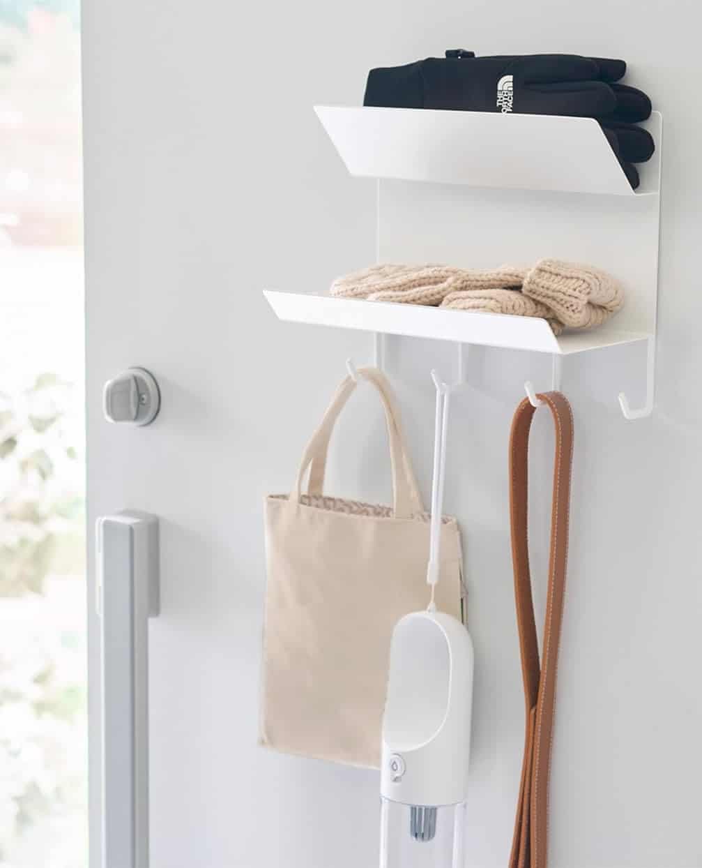 This is how you make a small entryway behave: use the door. The two-tier design creates space for gloves, hats, and grab-and-go essentials, while the hooks handle keys, leashes, and bags without swallowing floor space. It’s especially brilliant for apartment living, where a “real” mudroom doesn’t exist—but you still need one.
