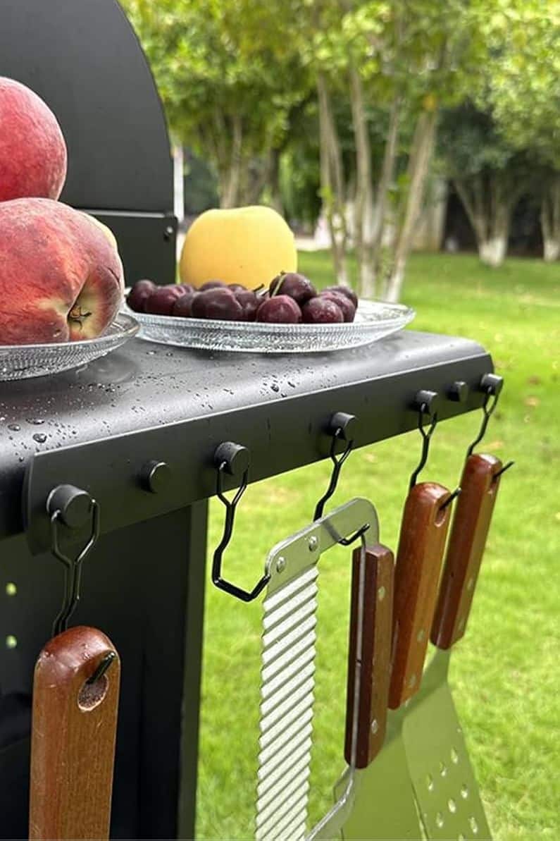 Outdoor cooking gets messy fast when your tools don’t have a designated landing spot. This magnetic rack attaches to the side of your grill and gives you five swivel hooks for tongs, spatulas, thermometers, and bottle openers—aka the stuff you want within arm’s reach, not balancing on a greasy tray. The best part is how instantly it “organizes” your setup without adding another cart or storage bin.