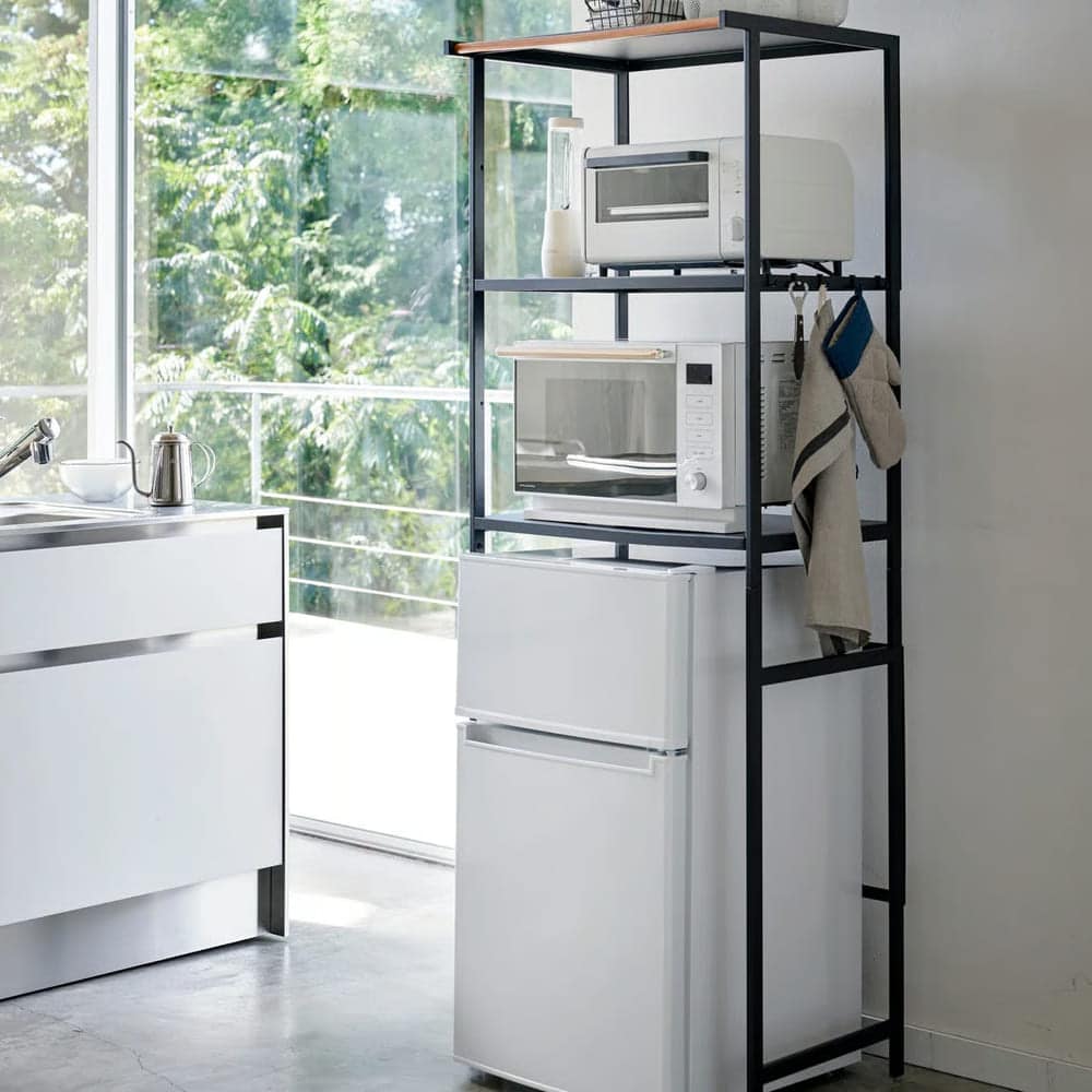 Tame your countertop chaos with this tall rack, which creates vertical storage for appliances and even small refrigerators.