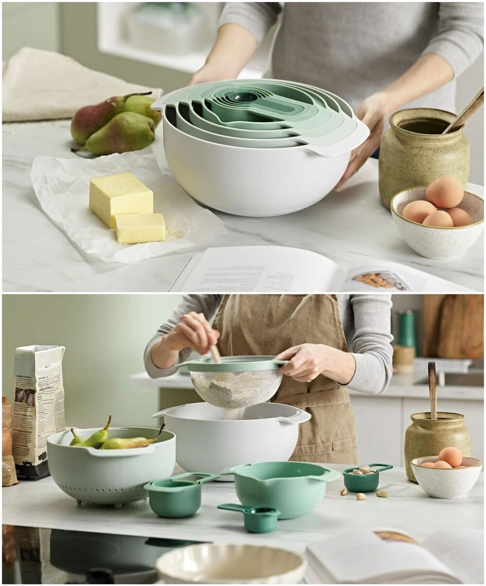 Bowls, colanders, and measuring cups all in one compact, colorful stack. It’s the nesting doll of food prep.