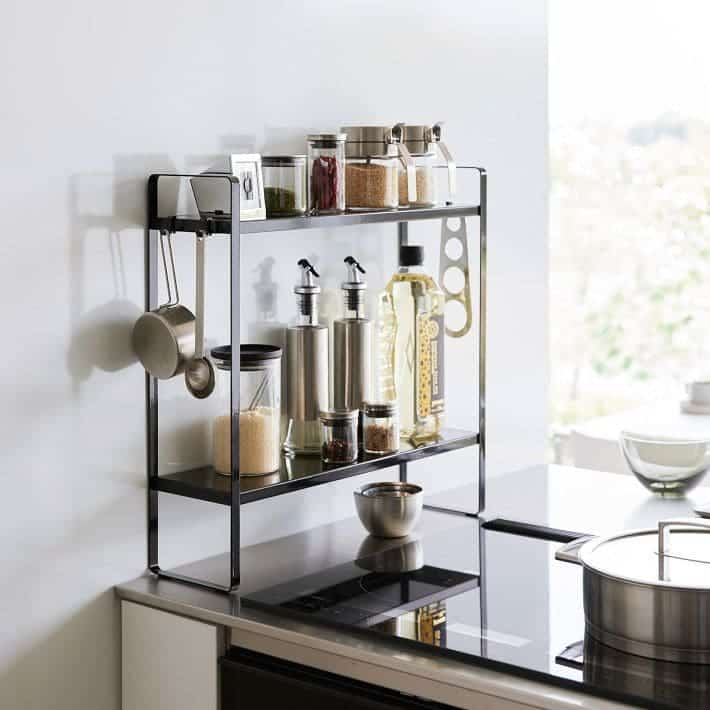 Designed with small kitchens in mind, this slim shelf doubles your counter space and even has hooks for utensils.