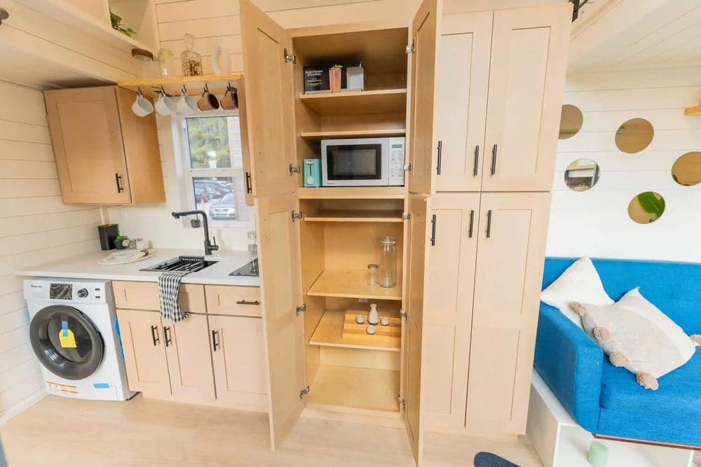 While the base model of Vista boasts two lower cabinets, a sink, and an induction cooktop, this model features several upgrades, including a shelf for hooks to hang small items, a 7.1 cubic-foot refrigerator, and a combo washer/dryer. You are well and truly set up for comfortable everyday living.