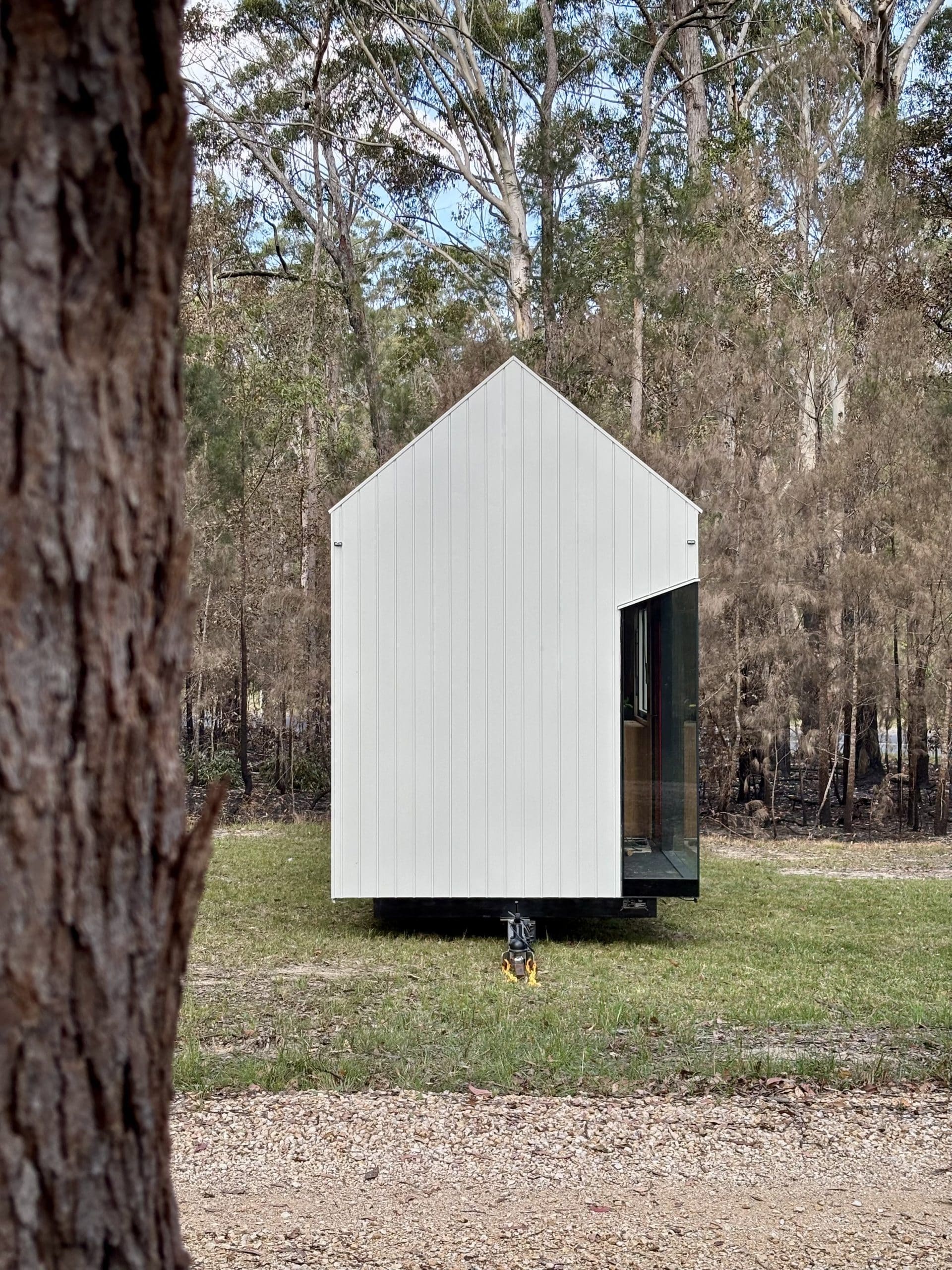 Häuslein Tiny House Co has thought of everything to make this tiny home stand out from the crowd – from the premium Australian-made steel frame to the Monument matte TrimDek Colorbond cladding back and roof. Completing the look is the Lunawood feature cladding in Surfmist white paint, as well as the aluminium and feature glass windows. There are even flyscreens on all opening windows for added comfort!