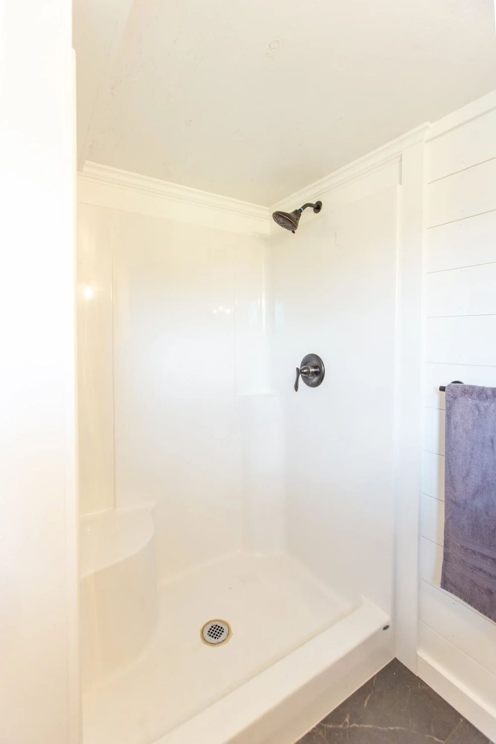 It’s the small details that have the biggest impact. The stainless-steel vanity light provides efficient illumination over the mirror and sink. You can also hang your towels on the multiple stainless steel towel hangers throughout.