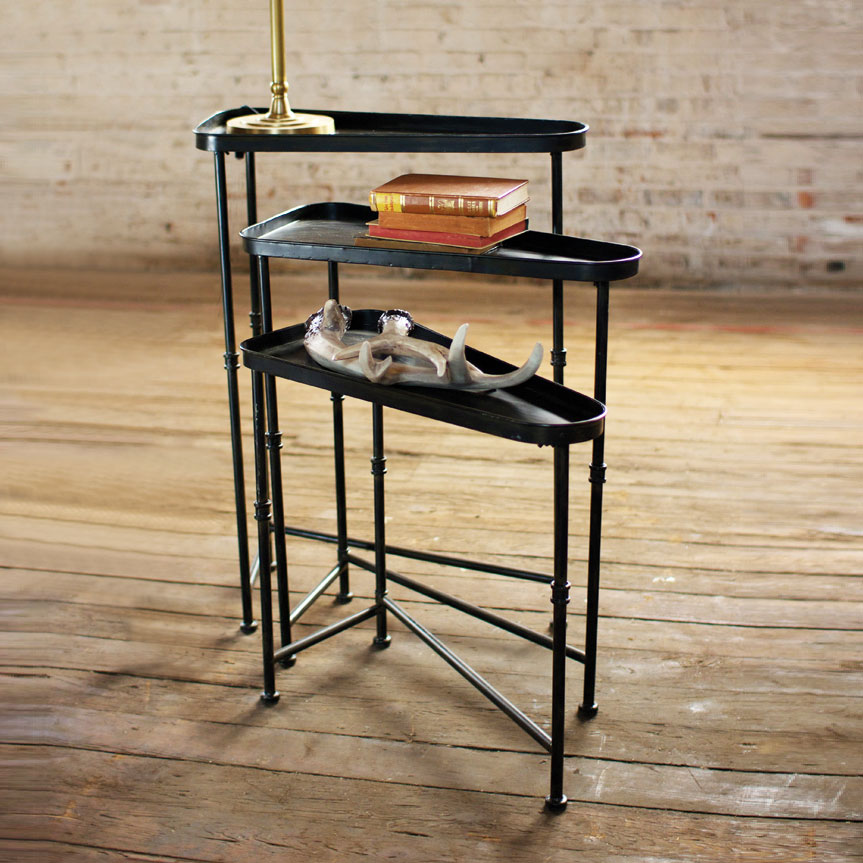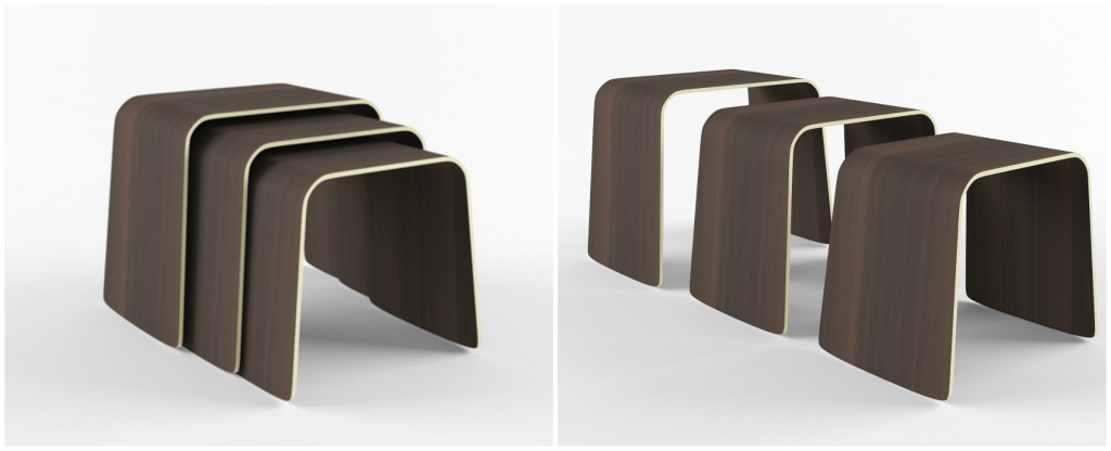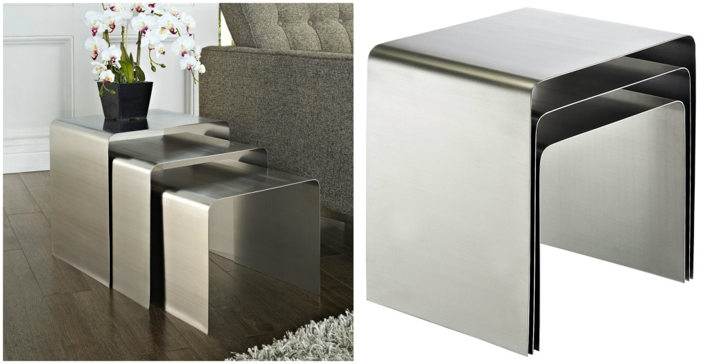 Modway Rush three piece nesting tables made of brushed aluminum sheets. Price: $264.99. Find them at Wayfair.com